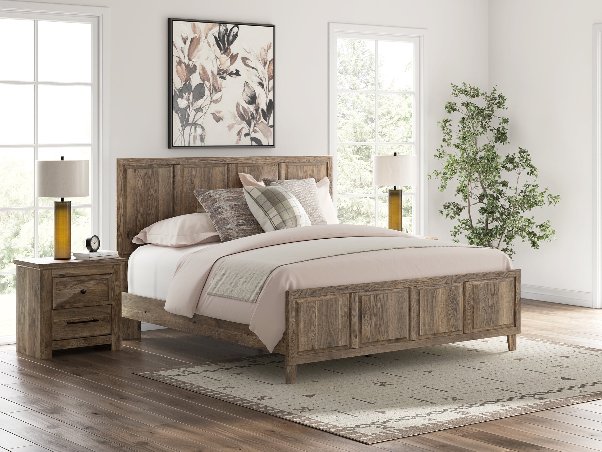 Rusticott King Panel Bed with Mirrored Dresser
